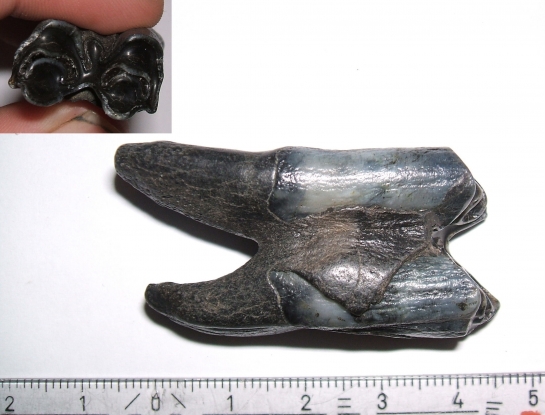 is de derde een runderkies?? heb hem zelf geprobeerd te determineren op die determinatiesite voor tanden maar kwam er niet echt uit hij lijkt veel te breed en kort voor een rund vond het wel appart dat de wortels nog gewoon helemaal heel zijn.